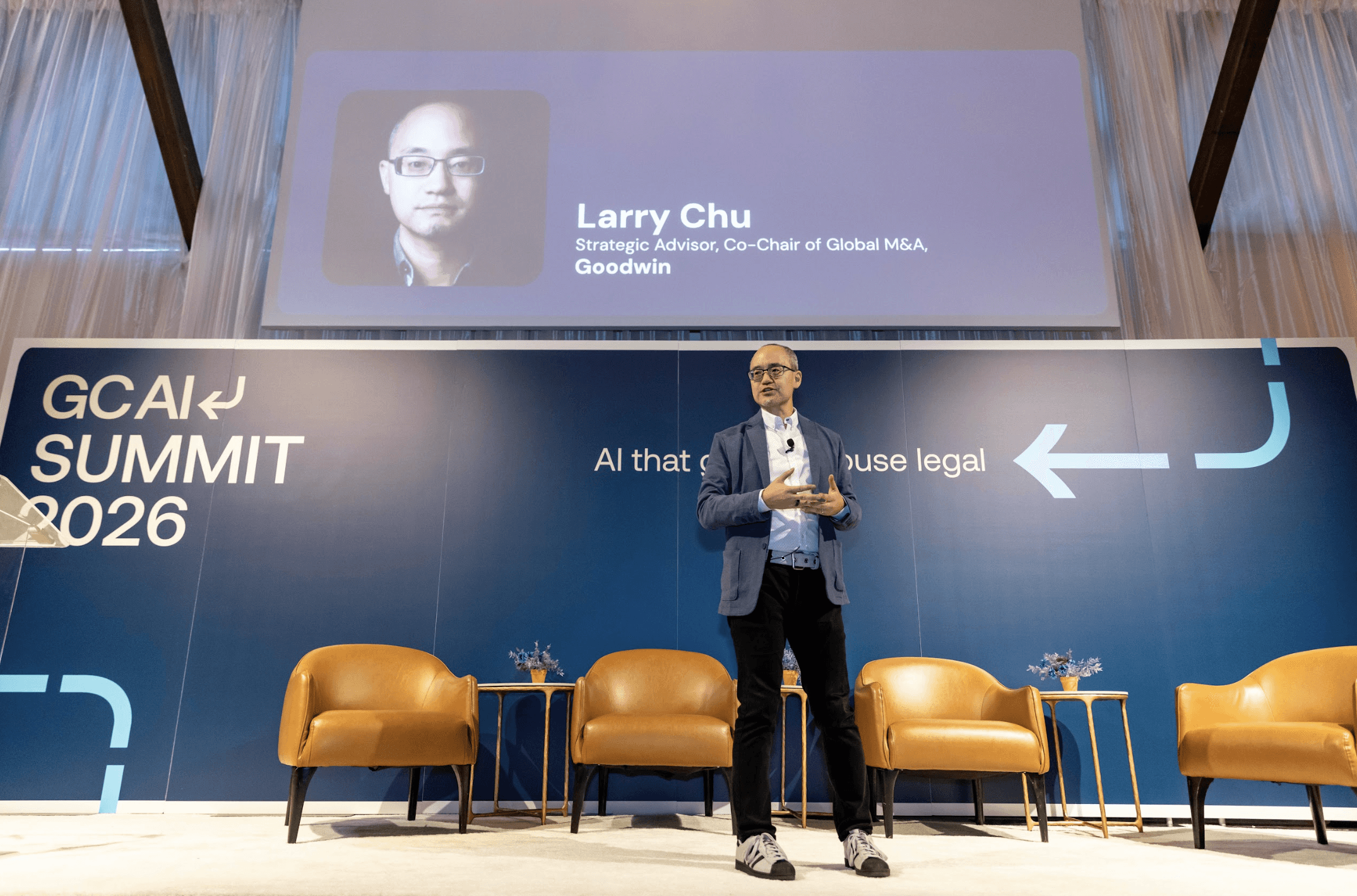 Larry Chu, Partner at Goodwin, in the opening of his 2026 GC AI Summit session.
